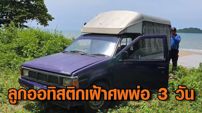 เมื่อไปถึงที่เกิดเหตุ พบรถยนต์กระบะ ตอนเดียว ยี่ห้อ nissan สีม่วง มีหลังคาคลุมกระบะ ทะเบียน 5645 จอดอยู่บริเวณริมชายหาดทะเลบ้านคลองวาฬ เขตเทศบาลคลองวาฬ ห่างจากอุทยานวิทยาศาสตร์พระจอมเกล้า ณ หว้ากอ ประมาณ 200 เมตร โดยมีลูกชายซึ่งป่วยออทิสติกอายุประมาณ 11-12 ปีนั่งเฝ้าศพพ่ออยู่บริเวณท้ายกระบะ