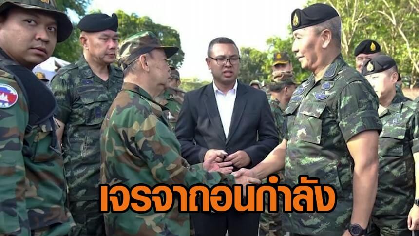 เผยผลการเจรจา ผบ.ทบ.ไทย-กัมพูชา สามารถบรรลุข้อตกลงในการถอนกำลังออกจากพื้นที่ขัดแย้ง พร้อมใช้กลไก JBC ในระดับรัฐบาลเร่งแก้ปัญหาในพื้นที่ชายแดน ด้าน สมเด็จฮุนเซน เผยแพร่แถลงการณ์กองทัพกัมพูชา ผลเจรจาแก้ปัญหาความขัดแย้งเหตุปะทะที่ช่องบก เพจดังระบุ ฝั่งไทยมี 3 ข้อ แต่กัมพูชามีข้อ 4 โผล่ ไม่ถอนกำลัง หรืออยู่ในพื้นที่โดยไม่มีอาวุธ