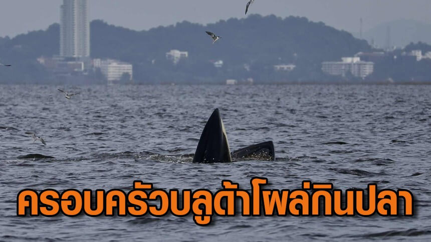 เอ็นดู! ครอบครัววาฬบลูด้า 3 ตัว โผล่เหนือน้ำไล่กินปลาใกล้หาดบางแสน