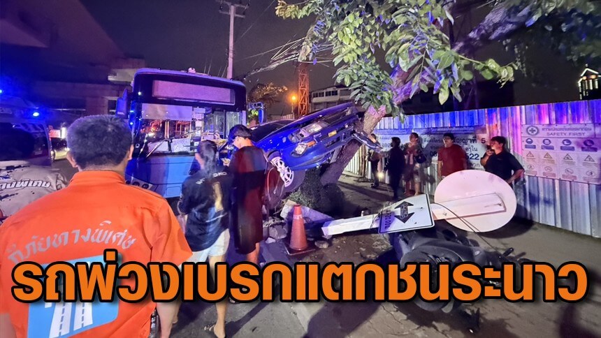 รถพ่วง 22 ล้อเบรกระเบิด พุ่งชนรถเมล์-เก๋ง-จยย. เจ็บเพียบ 55 ราย
