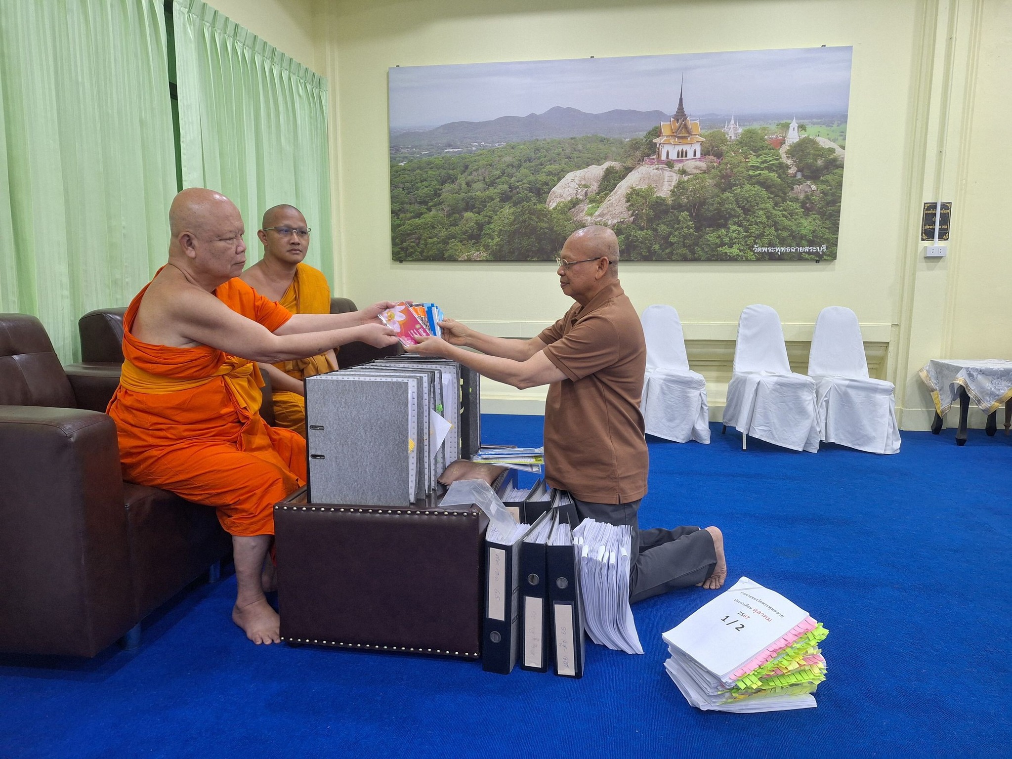 วันนี้ (12 ก.ค.) ทิดประดิษฐ์ หรือ อดีตพระเทพวชิรธีราภรณ์ เจ้าอาวาสวัดพระพุทธฉาย หลังลาสิกขาเกี่ยวพันคลิป “สีกากอล์ฟ” โพสต์ภาพบนเฟซบุ๊กพร้อมระบุข้อความ “สบายใจ ส่งมอบเอกสารสำคัญของวัดพระพุทธฉาย ให้แก่รักษาการเจ้าอาวาสวัดพระพุทธฉายรูปใหม่ สมุดบัญชีธนาคาร เอกสารบัญชีรับ-จ่ายเงินวัด เอกสารที่ดินวัด เอกสารสำคัญต่างๆ ทะเบียนรถยนต์ เป็นต้น”
