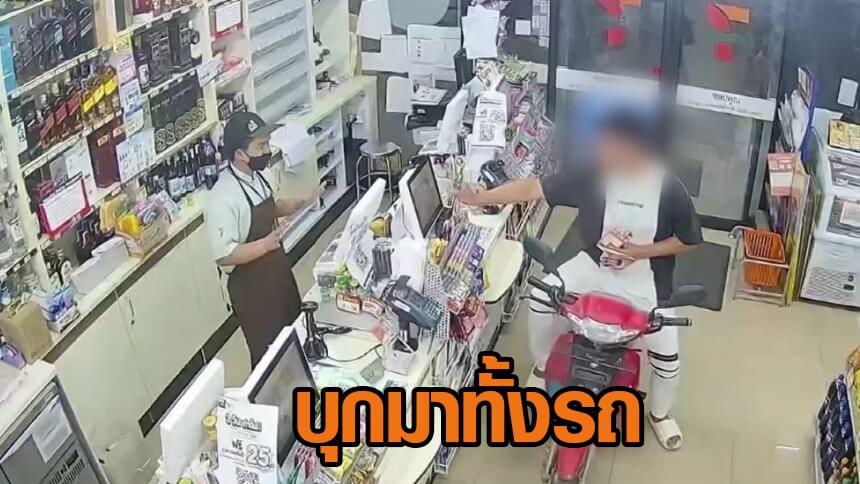 รวบแล้ว ชายขี่จยย.บุกร้านสะดวกซื้อ ใช้กรรไกรขู่ชิงทรัพย์ วงจรปิดจับภาพชัด