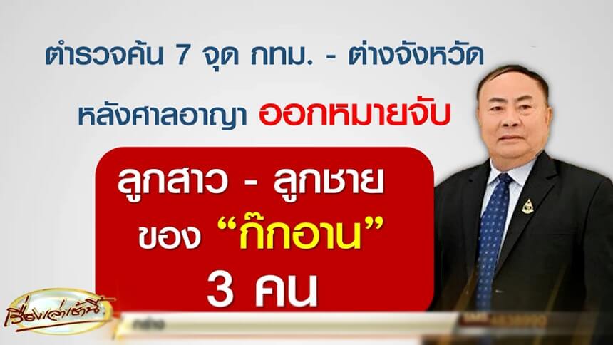 ตร.ลุยค้น 7 จุด คดีเครือข่าย 'ก๊กอาน' ศาลอาญาออกหมายจับ ลูกสาว-ลูกชาย 3 คน