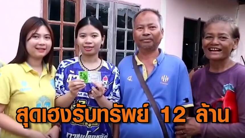 ผู้รับเหมาสุดเฮงถูกลอตเตอรี่รางวัลที่ 1 รับทรัพย์ 12 ล้าน ชาวบ้านแห่ผูกข้อมือ แสดงความดีใจ