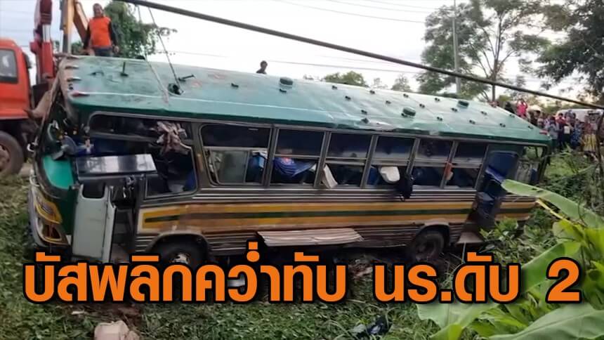 สุดสลด! รถบัสรับส่งนักเรียน 40 คน พลิกคว่ำทับเด็กเสียชีวิตคาที่ 2 สาหัส 1 เจ็บเล็กน้อยอื้อ