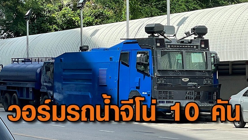 ตำรวจ คฝ. วอร์มรถน้ำ “จีโน่” รอ 10 คัน รอคำสั่ง ตร. หนุนสลายม็อบเขมร “บ้านหนองหญ้าแก้ว”
