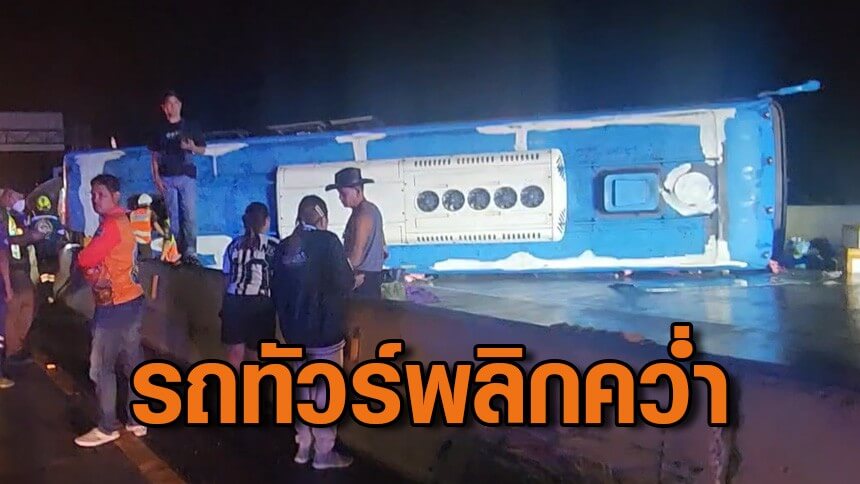 ฝนตกถนนลื่น รถทัวร์เชียงใหม่–กรุงเทพฯ พลิกคว่ำทางลงดอยขุนตาล ผู้โดยสารเจ็บ 14 ราย