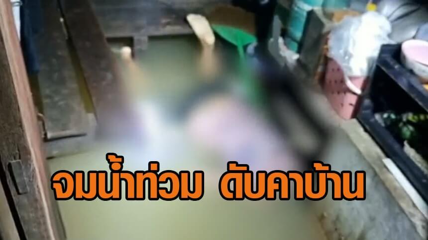 ในที่เกิดเหตุ พบร่างนางประไพ อายุ 85 ปี นอนคว่ำหน้าจมน้ำเสียชีวิตอยู่ภายในห้องพักที่ถูกน้ำท่วม ช่วงข้อเท้ายังพาดอยู่กับแผ่นไม้กระดานของบ้าน เสียชีวิตมาแล้วประมาณ 2 ชั่วโมง