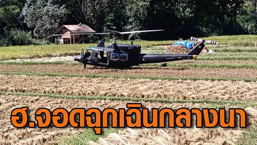 ฮ.ทหาร ฉก.สิงหนาท ลงจอดฉุกเฉินกลางทุ่งนาบ้านห้วยต้นนุ่น เร่งตรวจสอบหาสาเหตุ