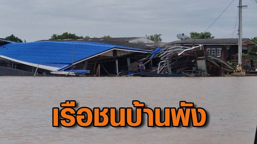 ระทึก เรือบรรทุกยิปซั่ม 5 พันตัน พุ่งชนบ้านริมแม่น้ำเจ้าพระยา พังถล่ม 3 หลัง
