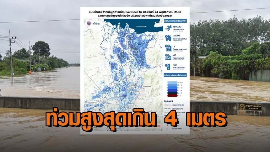 ดาวเทียม GISTDA เผยน้ำท่วมหาดใหญ่ ระดับน้ำวิกฤตสูงสุดเกิน 4 เมตร