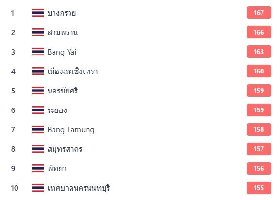 12 อันดับ ของค่าฝุ่น PM2.5 เขตสูงสุดในกรุงเทพมหานคร