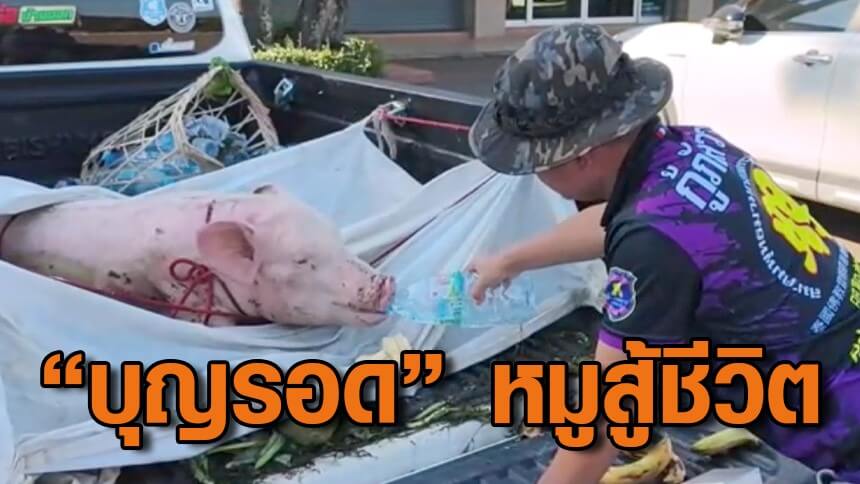 กู้ภัยอุดรฯใจดี รับเลี้ยง "บุญรอด" หมูสู้ชีวิต คาบเชือกลอยคอน้ำท่วมหาดใหญ่นาน 5 วัน