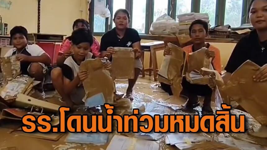 นักเรียน จ.สตูล เศร้า โรงเรียนโดนน้ำท่วมหนังสือ-อุปกรณ์การเรียน พังเสียหายหมดสิ้น