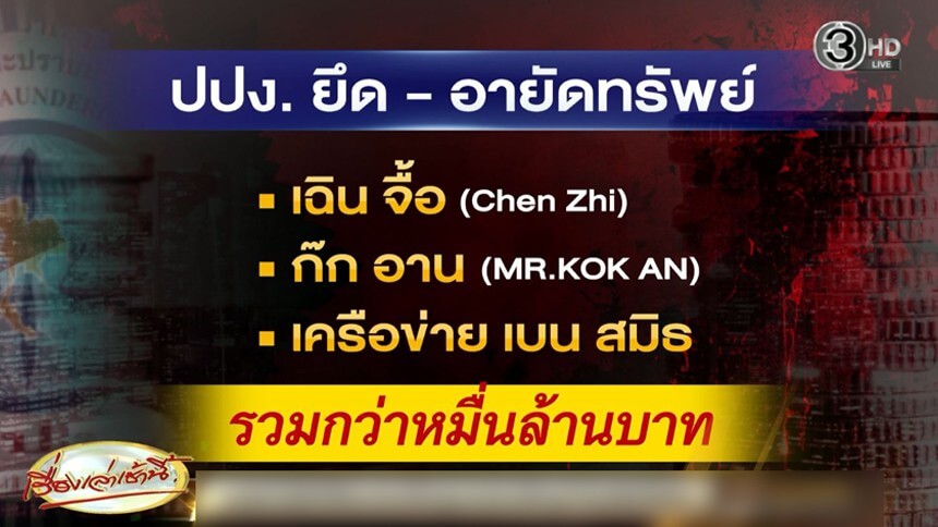 ปปง.ยึด-อายัดทรัพย์ เฉิน จื้อ - ก๊ก อาน - เครือข่าย เบน สมิธ กว่าหมื่นล้าน