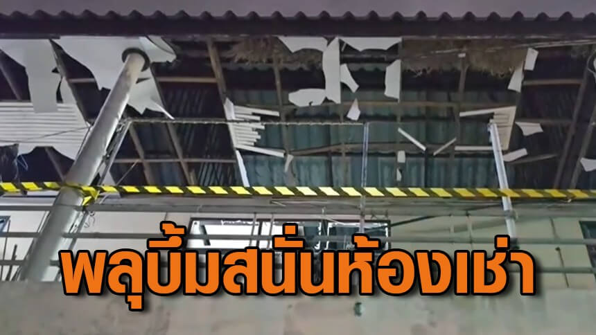 หนุ่มรับจ็อบลักลอบผลิตพลุ เกิดพลาดระเบิดสนั่น ได้รับบาดเจ็บ ห้องเช่าพังราบนับ 10 ห้อง