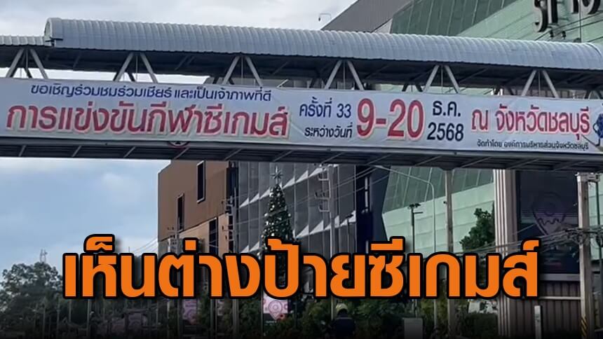 5 ธันวาคม 2568 ผู้สื่อข่าวลงพื้นที่ตรวจสอบบริเวณสะพานลอย พบว่าป้ายซีเกมส์ดังกล่าว เป็นการประชาสัมพันธ์การแข่งขันซีเกมส์ที่จังหวัดชลบุรี ได้รับมอบหมายจากการกีฬาแห่งประเทศไทย (กกท.) ให้เป็นเจ้าภาพร่วม โดยมีการติดตั้งไว้ทั้งฝั่งขาเข้าชลบุรีและฝั่งขาเข้าพัทยา สามารถมองเห็นได้อย่างชัดเจนจากผู้ใช้รถใช้ถนน