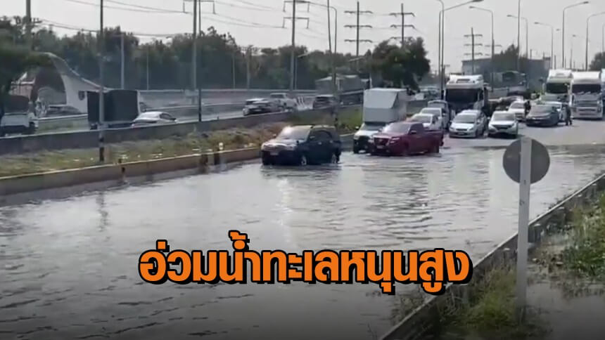 น้ำทะเลหนุนสูงท่วมถนนพระราม 2 ทำจราจรเป็นอัมพาต คาดพรุ่งนี้เจออีกระลอก