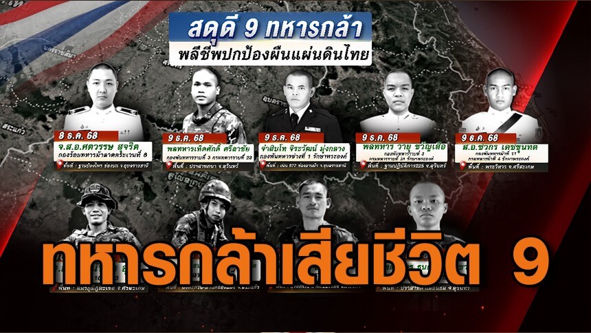 กองทัพบก แจ้งข้อมูลประชาชนเสียชีวิต (ทางอ้อม) จากเหตุปะทะไทย-กัมพูชา ตั้งแต่วันที่ 7 ธ.ค. 68-11 ธ.ค.68 ได้แก่