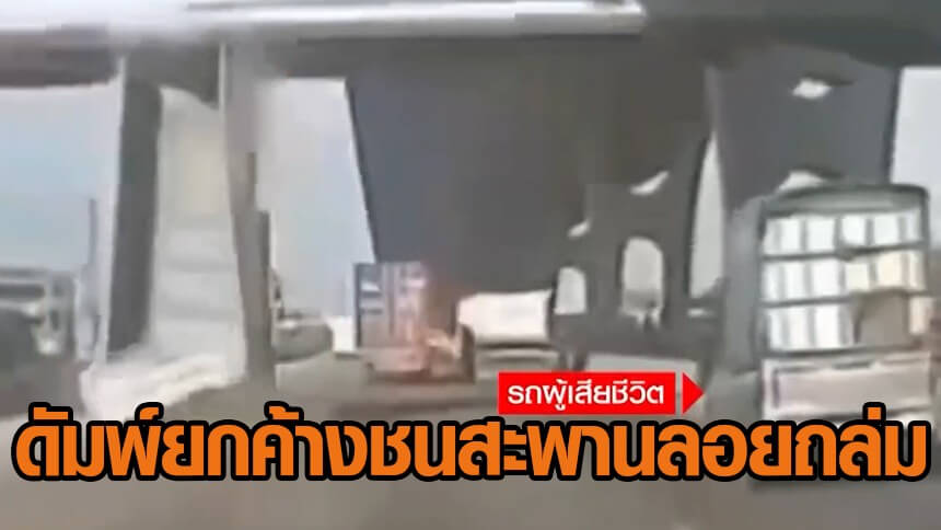 ผู้เชี่ยวชาญสันนิษฐาน คนขับประมาท รถบรรทุกดัมพ์ยกค้างชนสะพานลอยถล่มทับรถขนไข่ เสียชีวิต 1 ราย