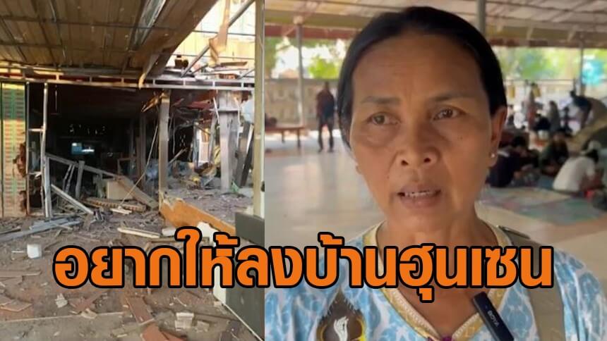 น้ำตาชาวบ้านชายแดน บ้านสร้างให้พ่อแม่พังจาก BM-21 ลั่นอยากให้ระเบิดไปลงบ้าน 'ฮุน เซน' ดูบ้าง