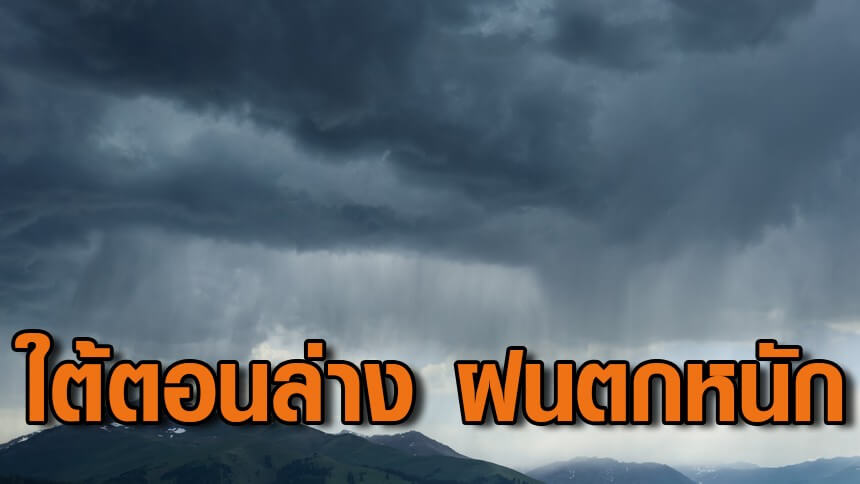 ทางตอนล่างของภาค : มีฝนฟ้าคะนอง ร้อยละ 60 ของพื้นที่ และมีฝนตกหนักบางแห่งบริเวณจังหวัดนครศรีธรรมราช พัทลุง สงขลา ปัตตานี ยะลา และนราธิวาส