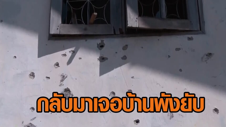 ชาวบ้านชายแดนทยอยกลับบ้าน เห็นสภาพบ้านช็อก BM-21 ถล่มพังอยู่ไม่ได้