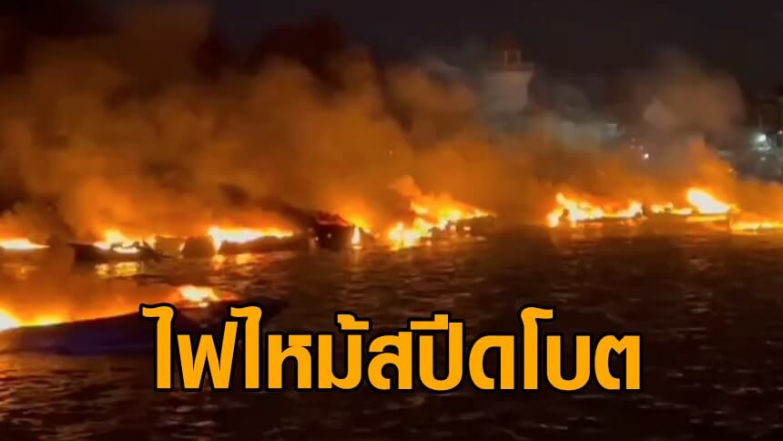 ระทึก! ไฟไหม้เรือสปีดโบต จอดเทียบท่าอ่าวฉลอง วอดแล้วกว่า 10 ลำ