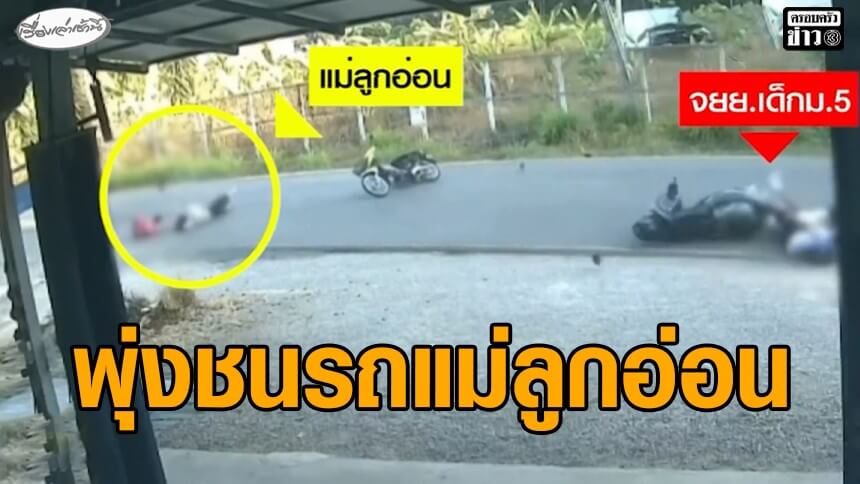 นาทีระทึก นักเรียน ม.5 บิดจยย.รีบไปเรียน พุ่งชนท้ายแม่ลูกอ่อน เจ็บระนาว 5 ราย