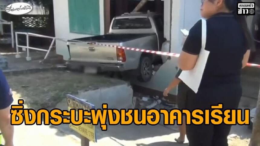 หนุ่มวูบ ขับกระบะพุ่งชนอาคารเรียน เด็กในห้องเรียนรอดหวุดหวิด