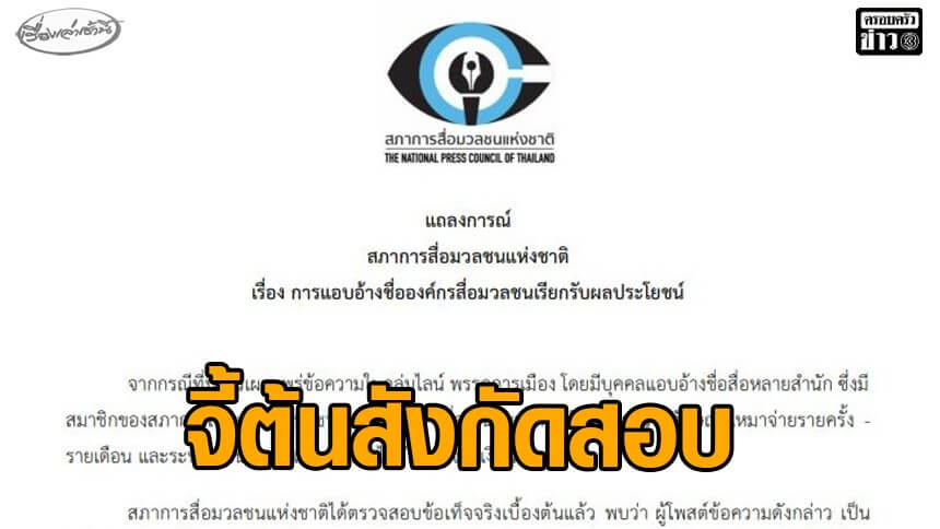 สภาการสื่อมวลชนแห่งชาติ ออกแถลงการณ์ ปมแอบอ้างชื่อองค์กรสื่อมวลชนเรียกรับผลประโยชน์