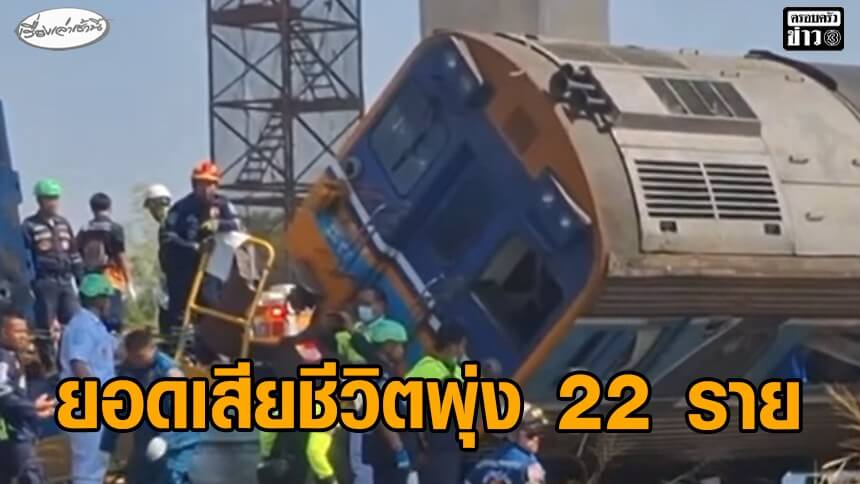 เครนถล่มทับรถไฟดับพุ่ง 22 ราย เจ็บกว่า 48 รายเหตุ ล่าสุดสั่งยุติค้นหาชั่วคราว “ยศชนัน-เท้ง” แสดงความเสียใจ