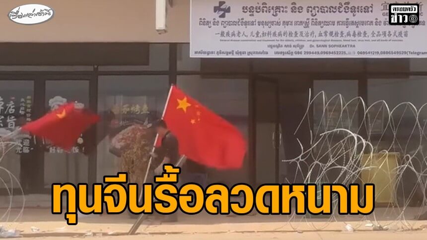 ทุนจีนเหิม รื้อลวดหนามหีบเพลงของไทย ชูธงชาติจีนเตรียมเปิดร้านค้าฝั่งทมอดา