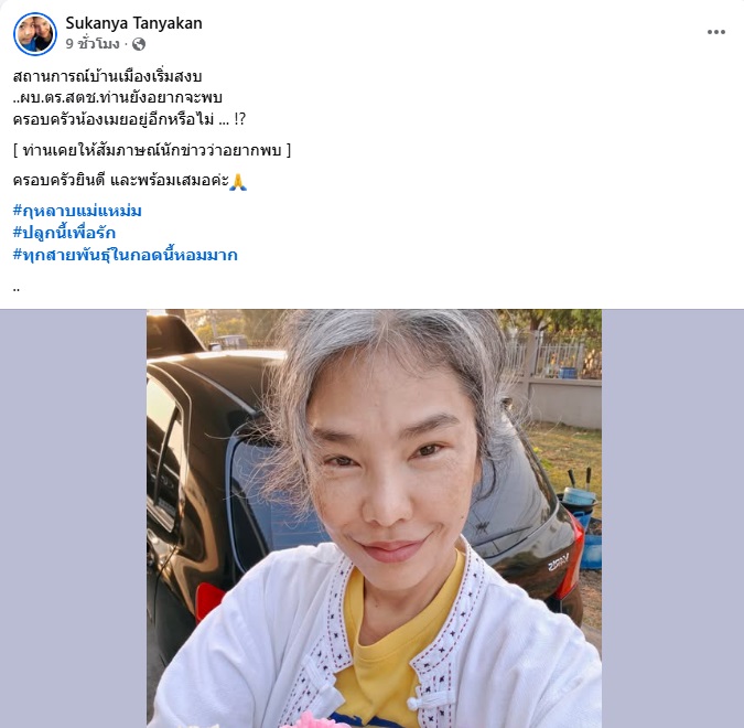 “แม่น้องเมย” โพสต์ถาม สถานการณ์บ้านเมืองเริ่มสงบแล้ว “ผู้บัญชาการตำรวจแห่งชาติ - สตช.” ยังอยากพบครอบครัวอยู่อีกหรือไม่ หลังตามหาความยุติธรรมตั้งแต่วันที่ลูกเสียชีวิต