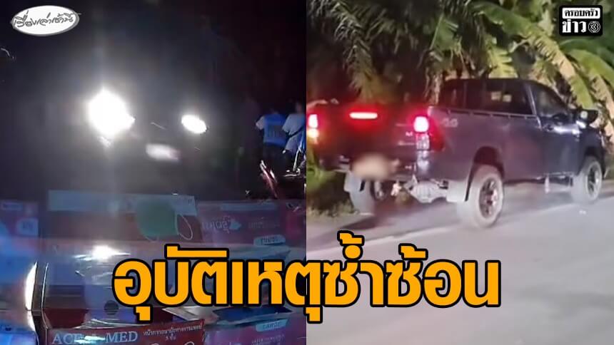 อุบัติเหตุซ้ำซ้อน! สาวเมาขับกระบะ พุ่งชนชายกำลังทำแผลข้างทางเสียชีวิต