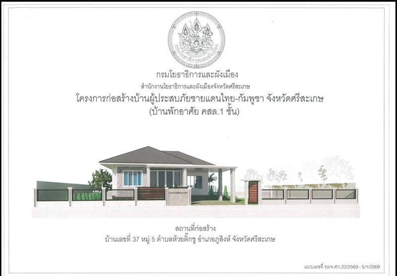 เมื่อวันที่ 12 ก.พ.69 ผู้รับเหมาก่อสร้างได้เริ่มดำเนินการ เข้าแบบและเทเสาบ้าน เสร็จเรียบร้อยแล้ว โดยจะแกะแบบเสาบ้านในวันนี้ การก่อสร้างแล้วเสร็จไปแล้ว คิดเป็น 15%และให้ติดตามรายงานการก่อสร้างทุกระยะ จนสร้างเสร็จ และส่งมอบให้ครอบครัวทหารกล้า ต่อไป