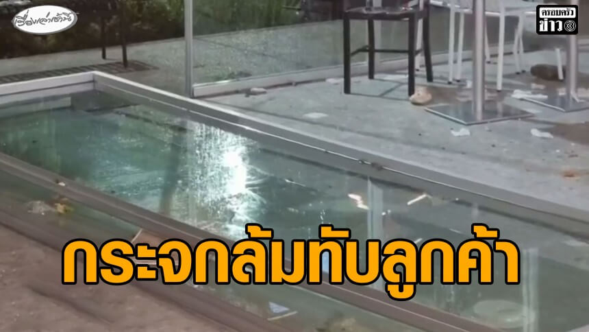 ฝนถล่ม ซัดผนังกระจกฟู้ดคอร์ทห้างล้มทับคน - เสาไฟฟ้าล้มทับโรงจอดรถ ต้องโหนสลิงช่วยนักศึกษา