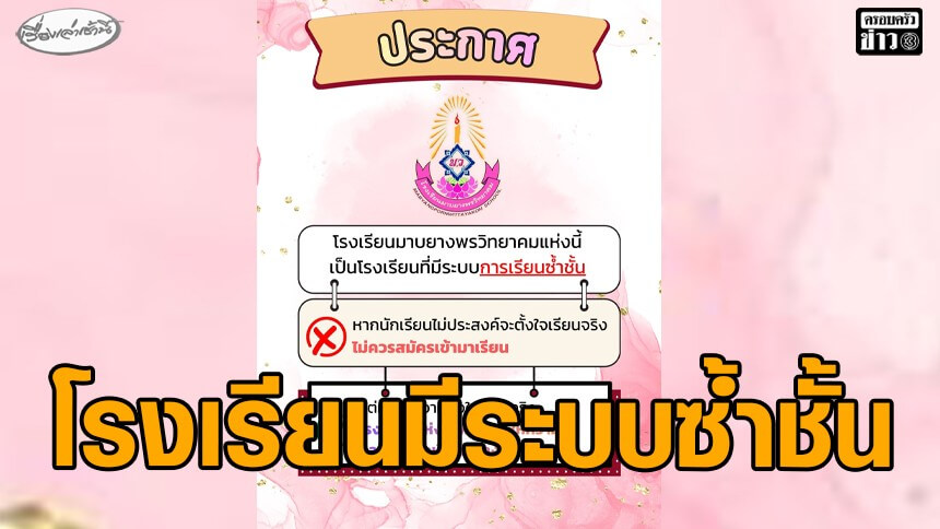 กลายเป็นกระแสไวรัลในโลกโซเชียล เมื่อเพจเฟซบุ๊ก “โรงเรียนมาบยางพรวิทยาคม” โพสต์ภาพประกาศตัวหนาชัดเจนระบุว่า โรงเรียนแห่งนี้มีระบบการเรียนซ้ำชั้น หากนักเรียนไม่ประสงค์จะตั้งใจเรียนจริง “ไม่ควรสมัครเข้ามาเรียน” แต่หากพร้อมพัฒนาตนเอง โรงเรียนก็พร้อมดูแลอย่างดีที่สุด