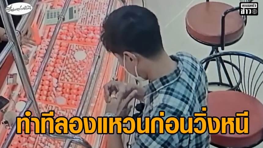 คนร้ายทำทีลองสวมแหวนทอง 1 บาท อาศัยจังหวะพนักงานเผลอ รีบวิ่งหนีออกจากร้าน