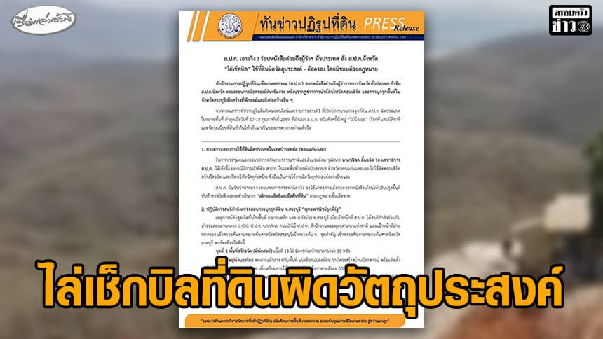 ส.ป.ก.ร่อนหนังสือด่วนถึงผู้ว่าฯ ทั่วประเทศ สั่งไล่เช็กบิลที่ดินผิดวัตถุประสงค์เรียกคืนสมบัติชาติ