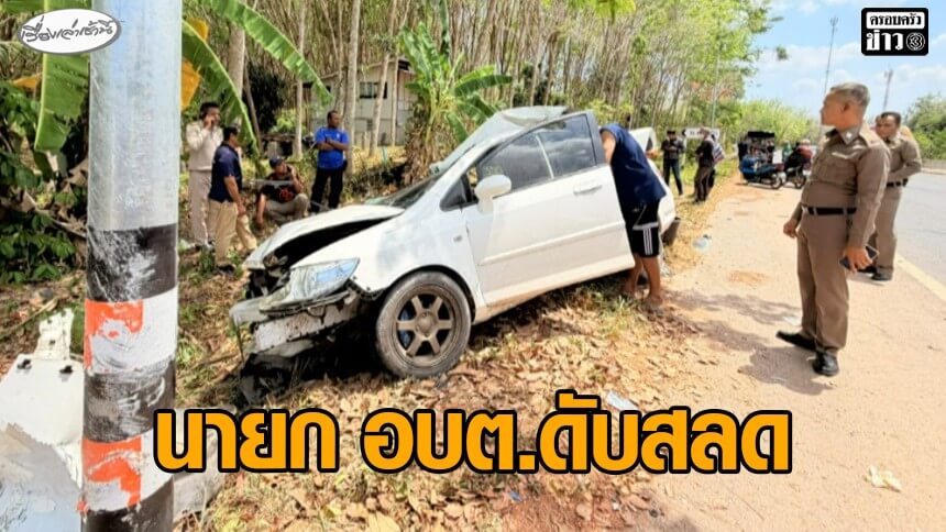 เก๋งเสียหลักชนเสาไฟฟ้า นายก อบต.เสียชีวิตหลังเพิ่งได้รับตำแหน่ง