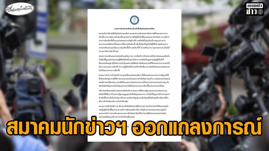 สมาคมนักข่าวนักหนังสือพิมพ์แห่งประเทศไทย ออกแถลงการณ์ ปมช่างภาพถูกดำเนินคดี จี้ กกต. พิจารณาให้รอบด้าน อาจส่งผลกระทบต่อเสรีภาพของสื่อมวลชน