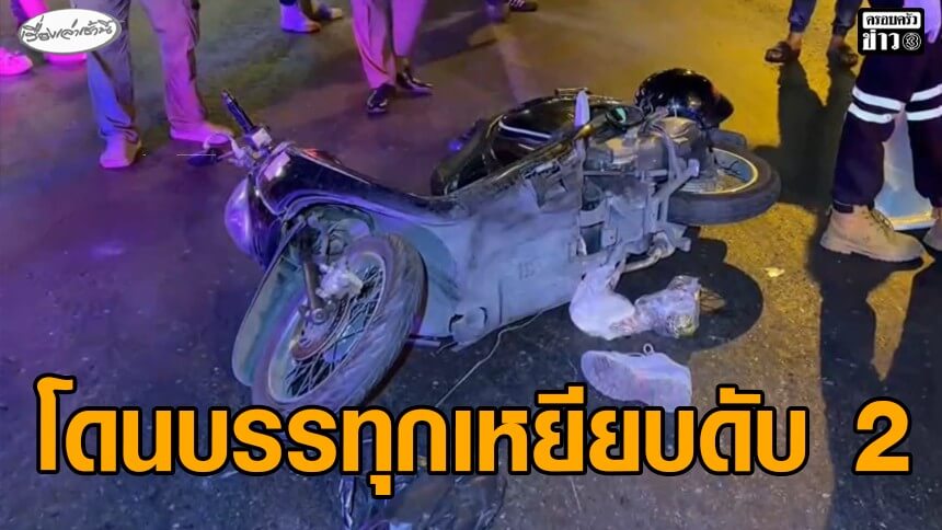 สลด! จักรยานยนต์ถูกรถบรรทุกพ่วงเหยียบกอดกันเสียชีวิตทั้งคู่ ก่อนรถบรรทุกขับหนีไป