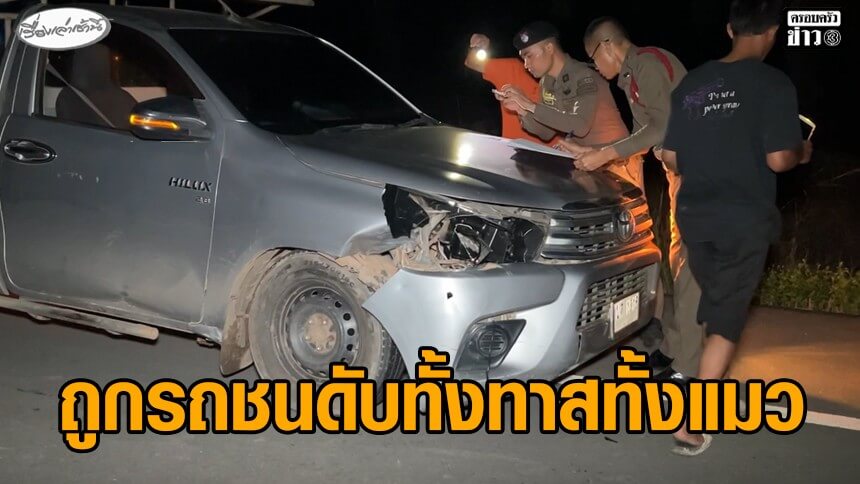 เศร้า! หญิงวัย 61 เจอกระบะชนเสียชีวิต ระหว่างอุ้มแมวรักที่ถูกชนตายกลับบ้าน
