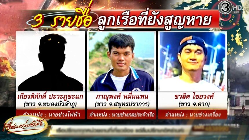 ยังไม่ทราบชะตากรรม 3 ลูกเรือสูญหาย ญาติปล่อยโฮหวังปลอดภัย ขอให้มีปาฏิหาริย์ วอนทุกฝ่ายเร่งช่วยเหลือ