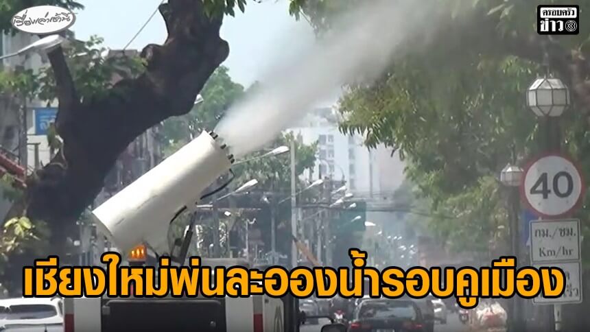 เทศบาลนครเชียงใหม่ นำรถออกพ่นละอองน้ำรอบคูเมืองและแหล่งท่องเที่ยวชุมชนที่มีคนหนาแน่น เปิดน้ำพุรอบคูเมือง เพิ่มความชื้นลดหมอกควัน ฝุ่น PM2.5 ขณะที่ ปภ.นำเฮลิคอปเตอร์ ดับไฟป่าในอำเภอแม่วาง 12 เที่ยว มากกว่า 36,000 ลิตร ช่วยลดกลุ่มควันไฟป่า