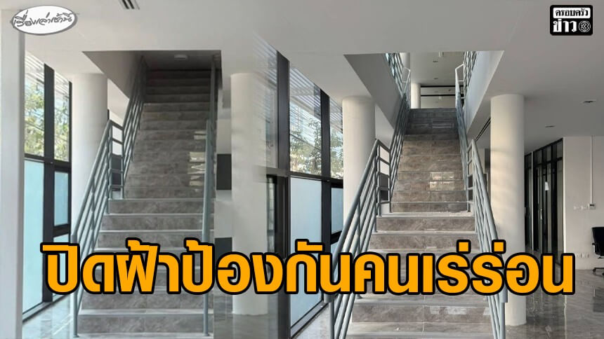 บันไดขึ้นชั้น 2 ได้ 'สน.สุทธิสาร' แจงนำแผ่นฝ้าปิดชั่วคราว พบงานควรเสร็จปี 66 ล่าช้ามา 3 ปี