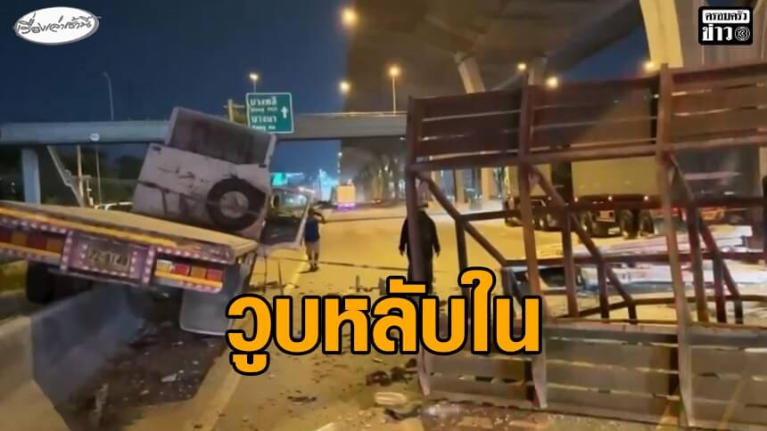 แท็กที่เกี่ยวข้อง อุบัติเหตุรถพ่วง ,กระดาษอัดก้อนขวางถนน ,แผ่นปูนหล่นขวางถนน