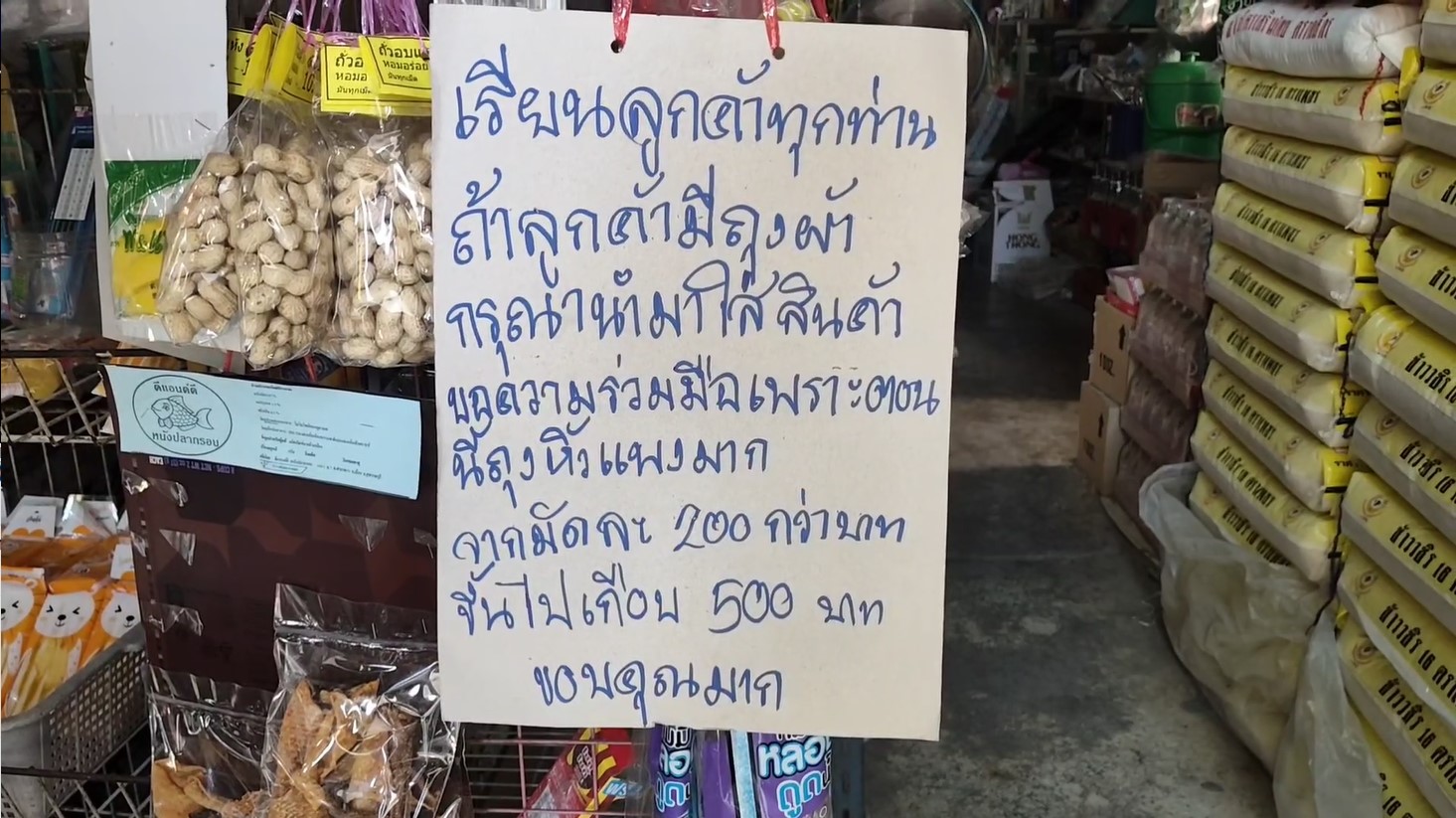 ถุงพลาสติกราคาพุ่งเกือบเท่าตัว ร้านของชำพิษณุโลก ขึ้นป้ายขอความร่วมมือลูกค้า นำถุงผ้าใช้จับจ่ายซื้อของ