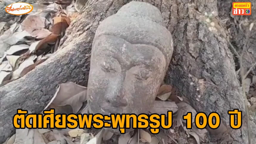 ชาวบ้านพบเศียรพระพุทธรูปโบราณเนื้อหินทราย อายุกว่า 100 ปี ถูกตัดทิ้งไว้โคนต้นไม้ริมถนนนเรศวร